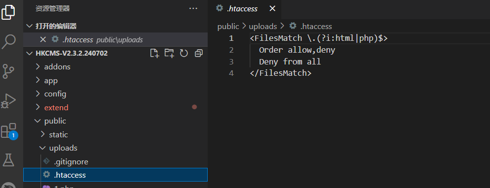 发现uploads目录下的.hatccess对.php文件设置了访问控制