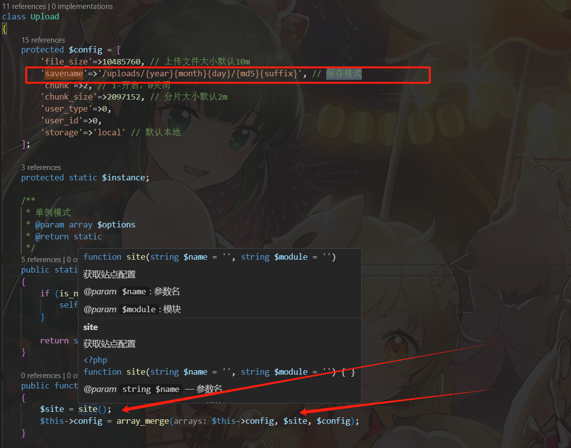 在/app/common/library/Upload.php的Upload类中通过site()方法来获取站点配置,而这个配置在管理后台可以被修改