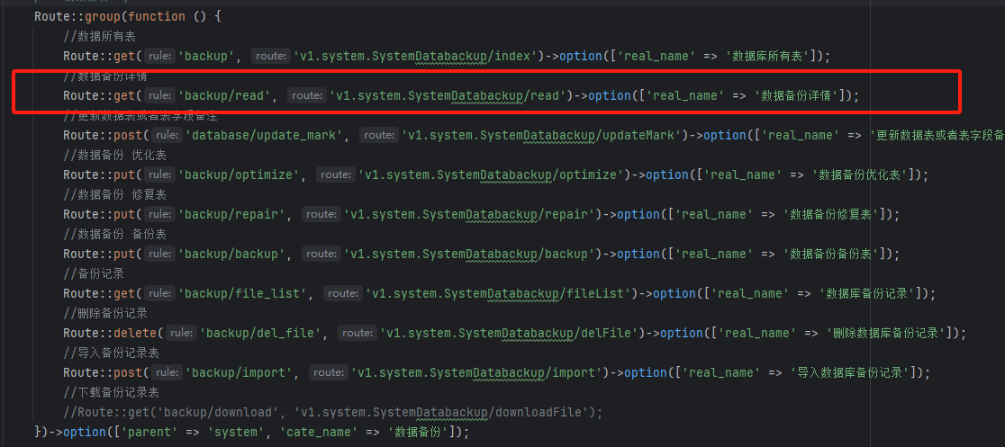 定位调用控制类文件app/adminapi/controller/v1/system/SystemDatabackup.php