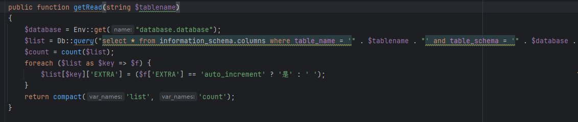 tablename参数设置sql注入过滤,限制输入字符或者做类型转换。 - 使用预编译执行sql语句