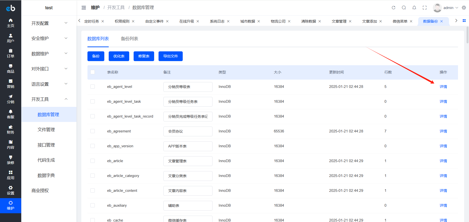 登录后台后访问/admin/system/maintain/system_databackup/index路由点击详情抓包即可