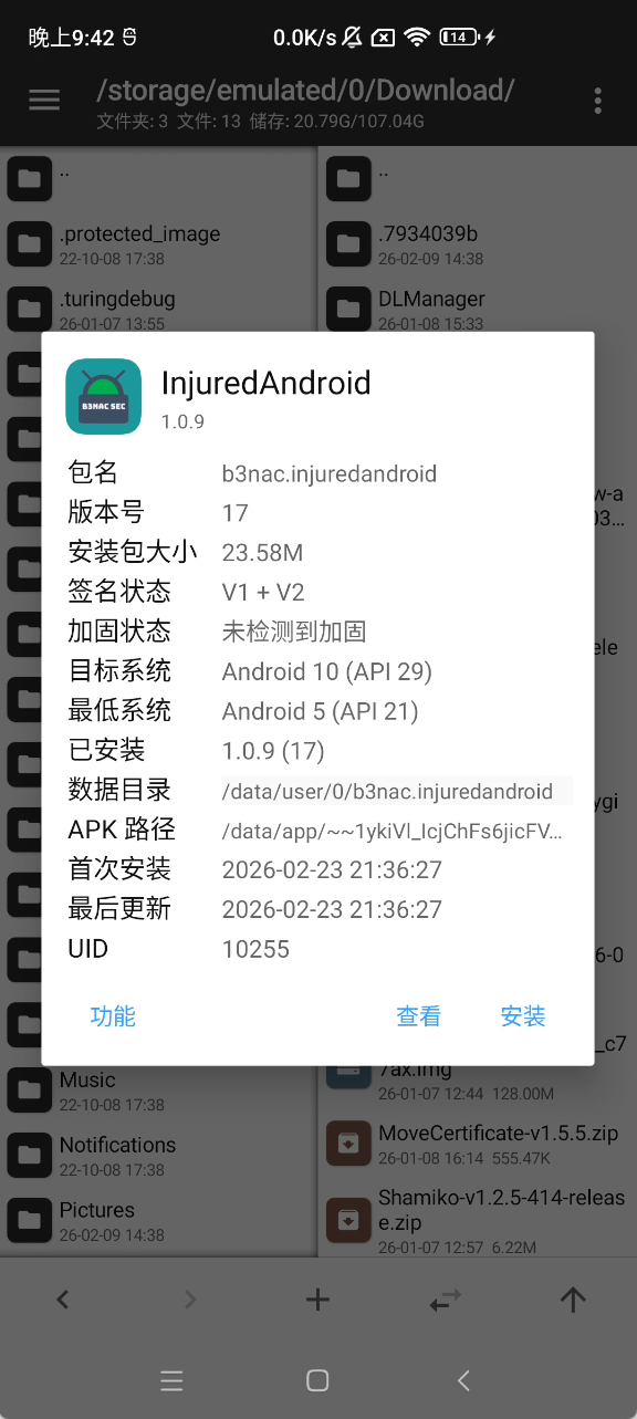 执行脚本 frida -U -f b3nac.injuredandroid -l hook.js
