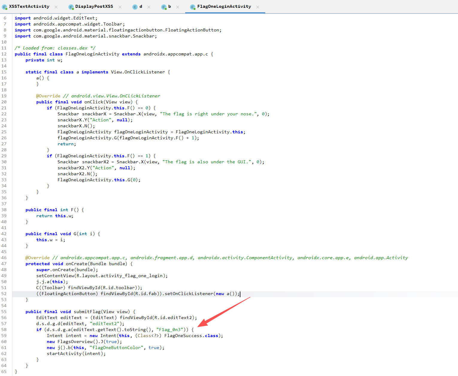 定位到b3nac.injuredandroid.FlagOneLoginActivity