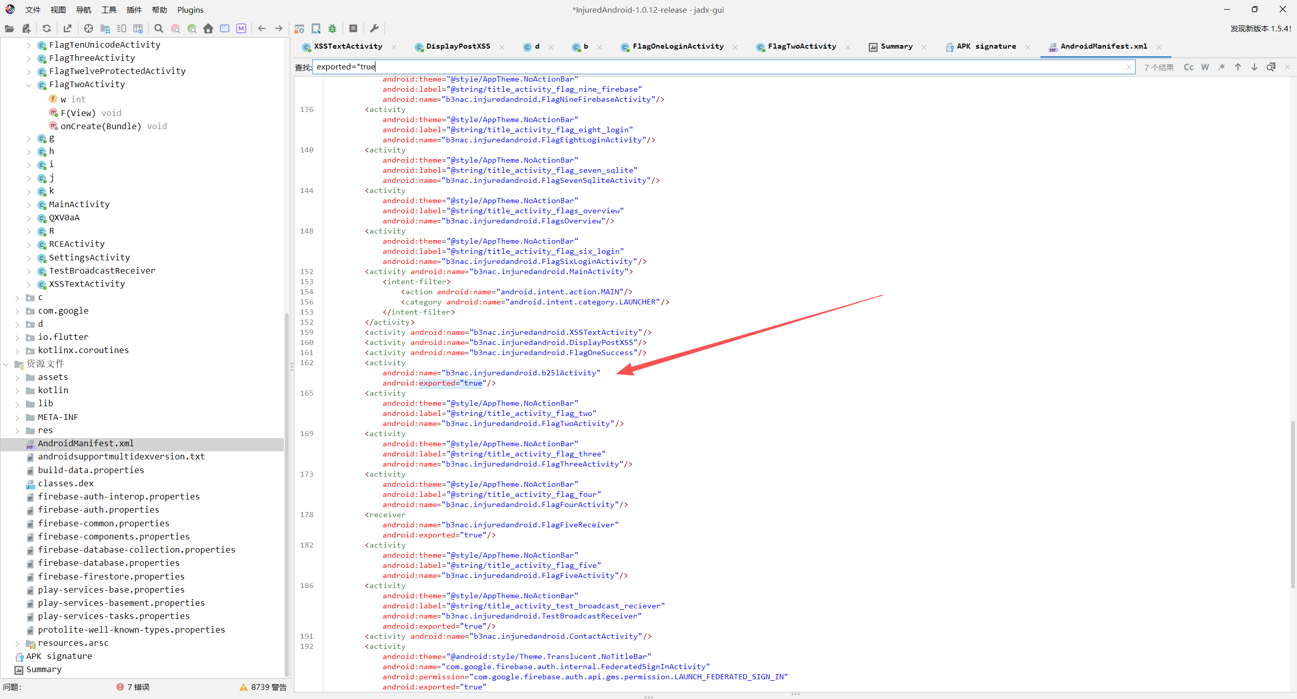 查看AndroidManifest.xml,这个广播接收器是可导出的