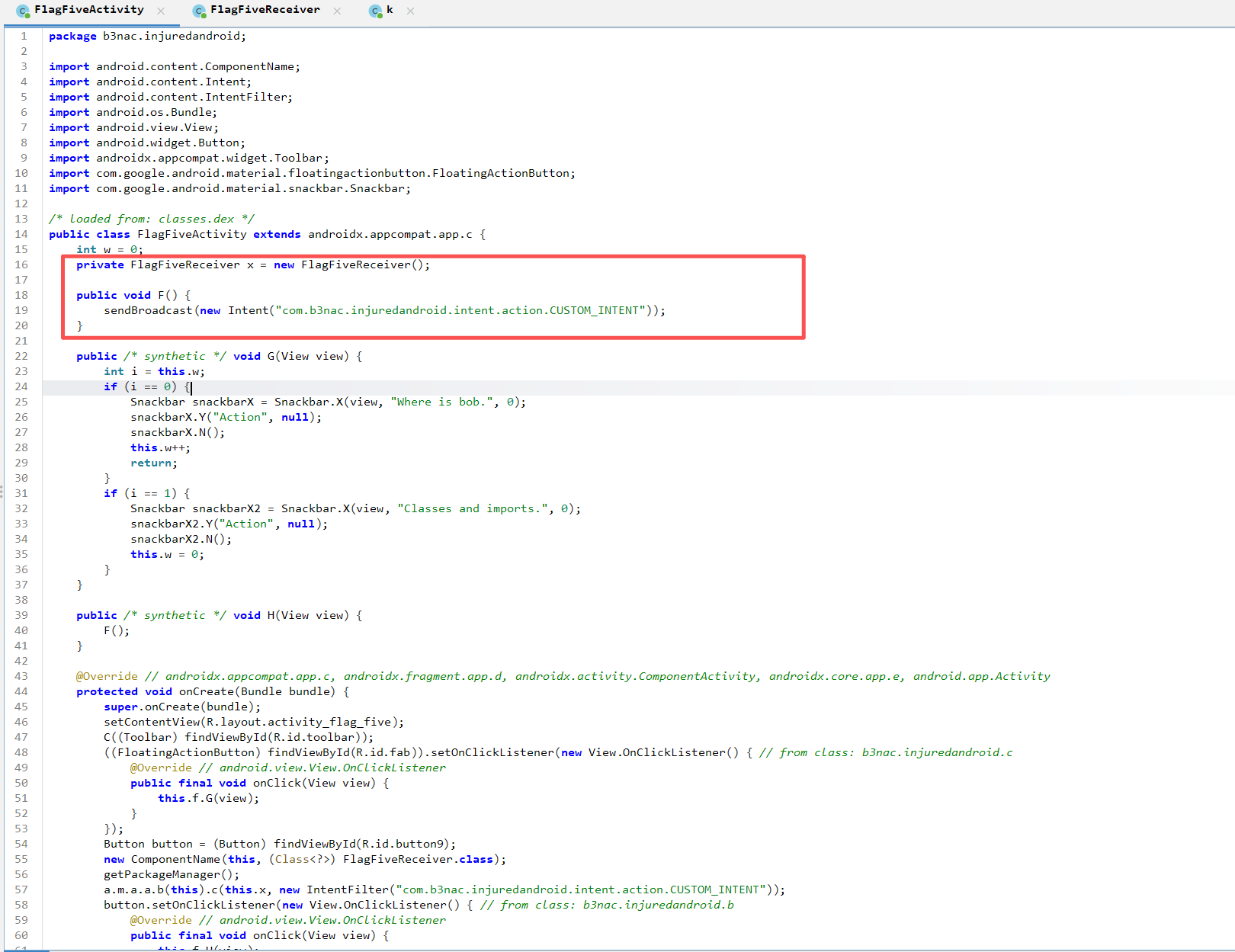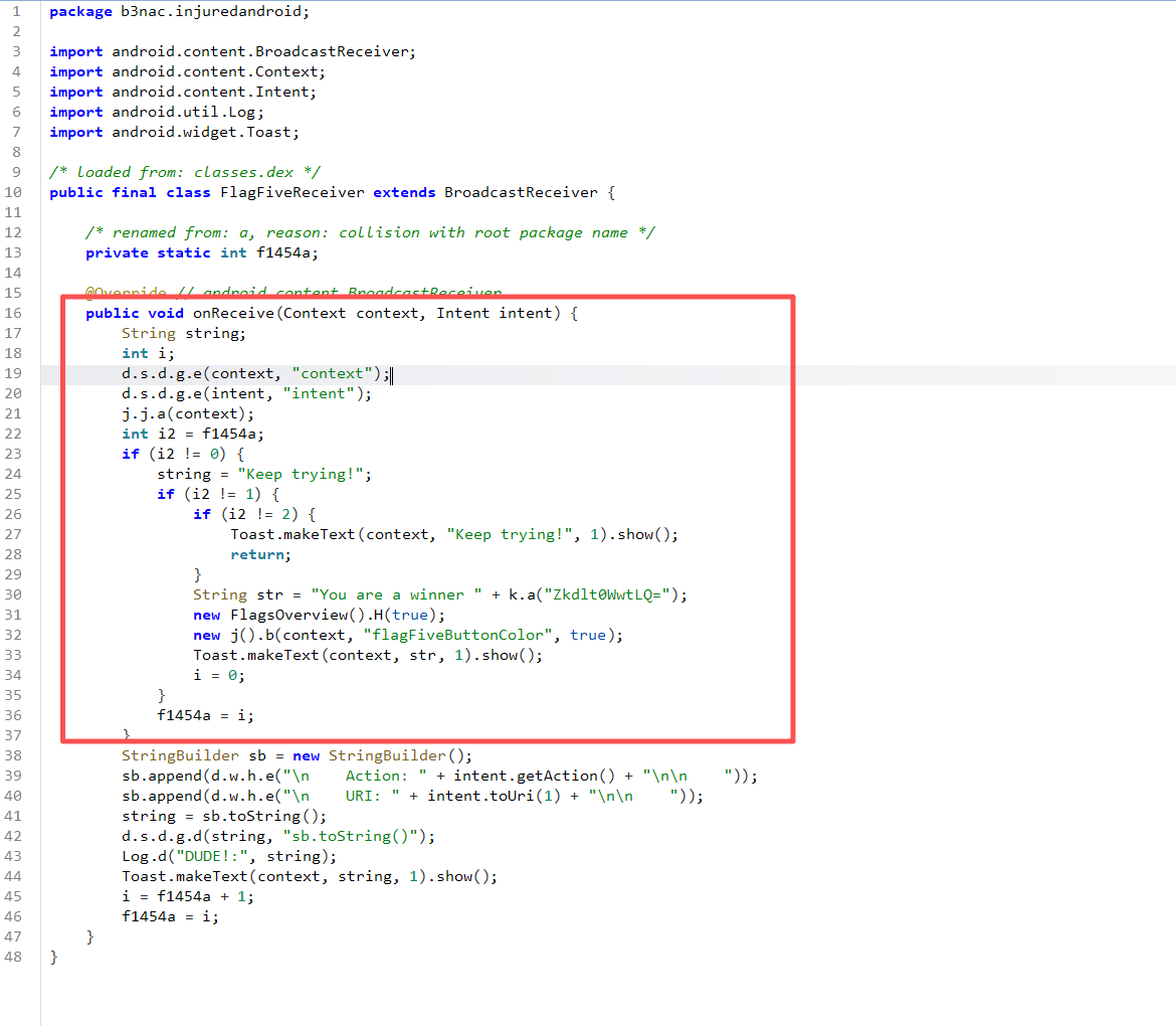 监听器b3nac.injuredandroid.FlagFiveReceiver