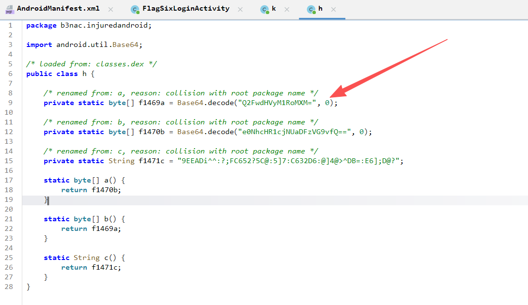 查看b3nac.injuredandroid.FlagFiveActivity