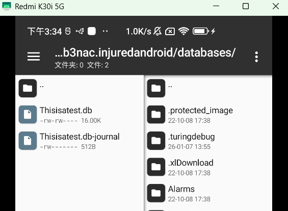 数据库文件可以在/data/data/b3nac.injuredandroid/databases/找到