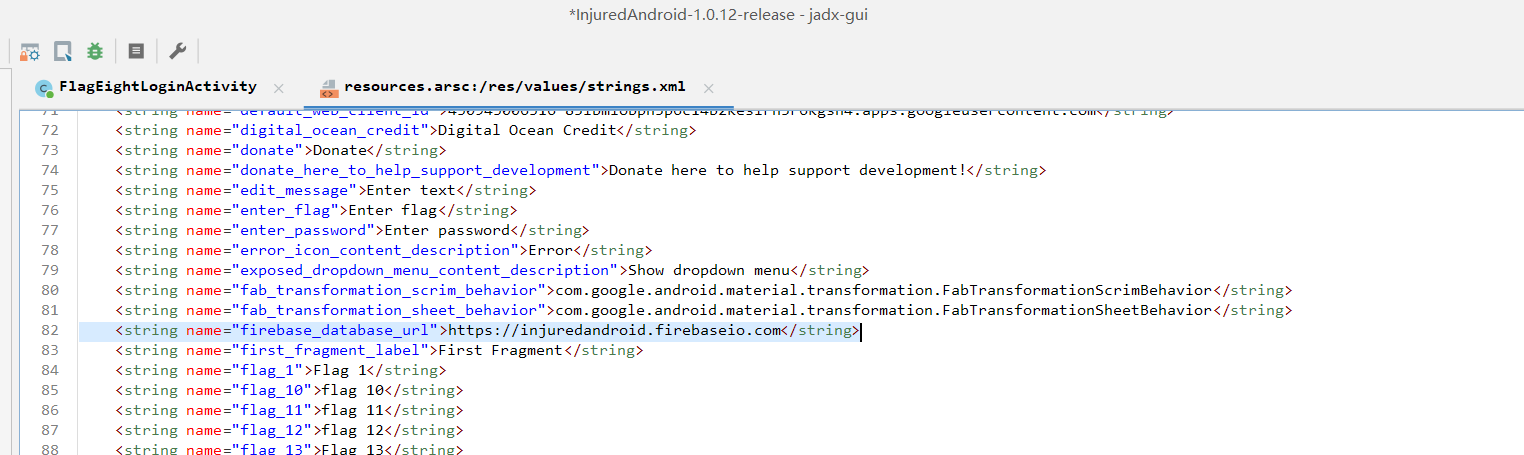 访问[https://injuredandroid.firebaseio.com/binary.json](https://injuredandroid.firebaseio.com/binary.json)