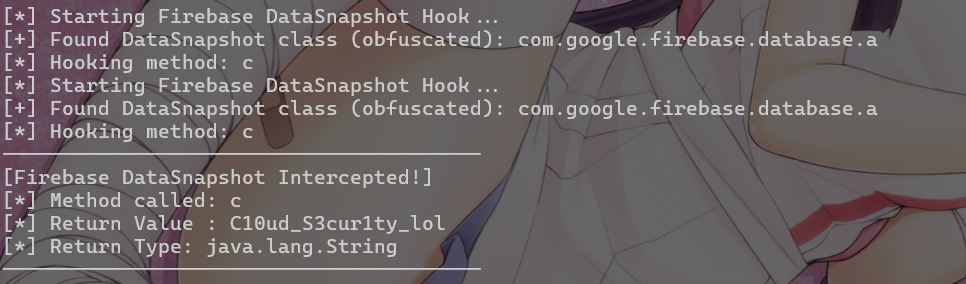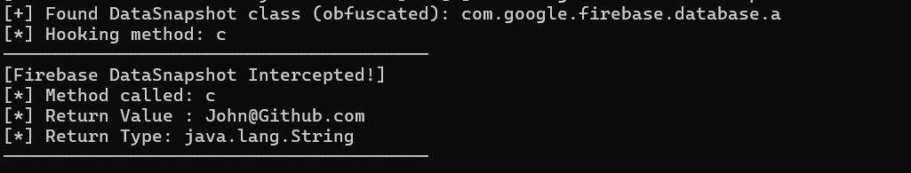 | Java.perform(function () { console.log("[*] Starting Firebase DataSnapshot Hook...");