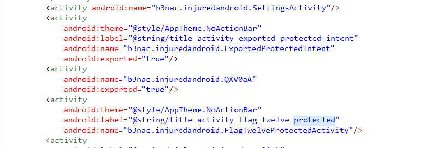 但是有另一个可导出的类 b3nac.injuredandroid.ExportedProtectedIntent