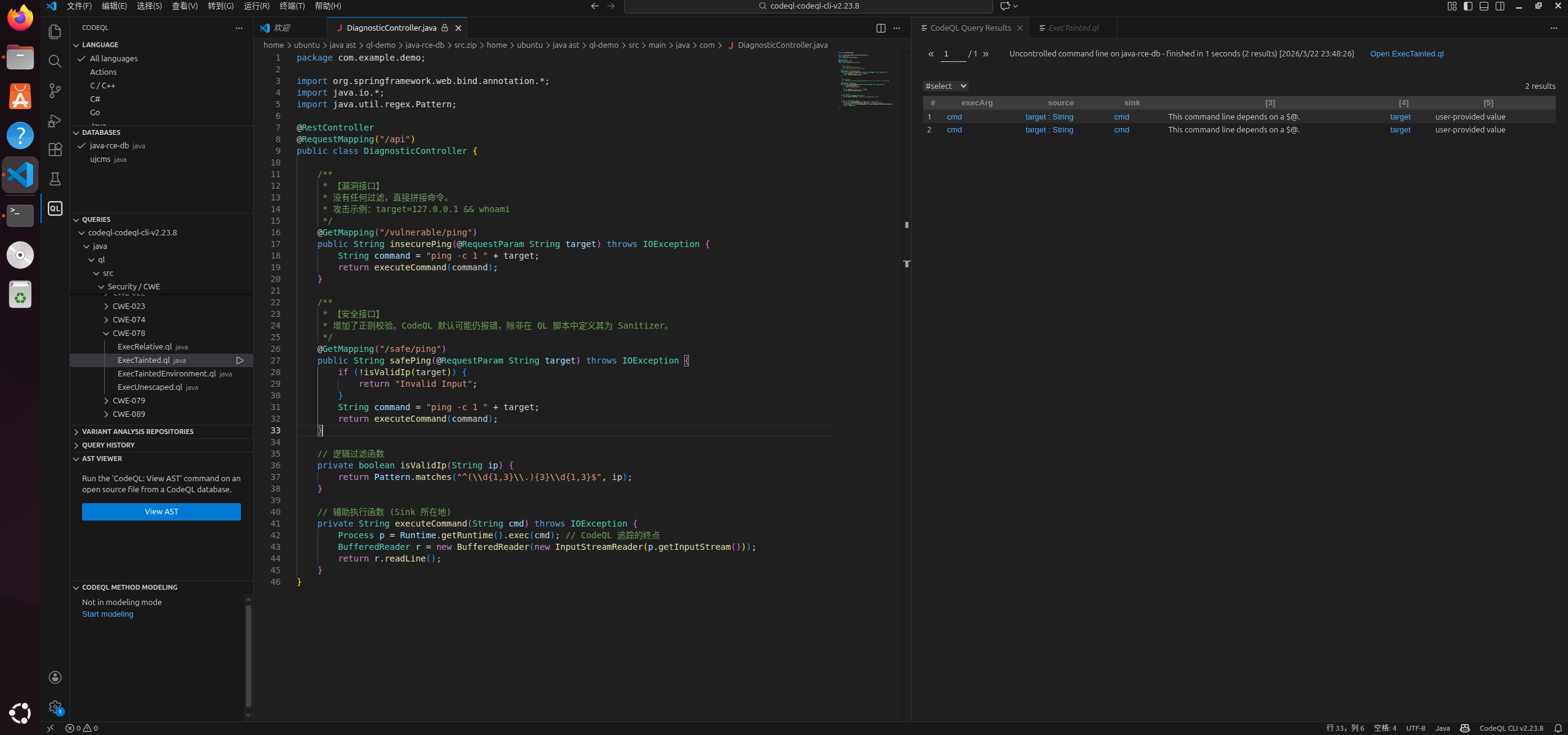 codeql的内置规则是基于CWE框架写的。命令执行相关的内置规则在CWE-078
