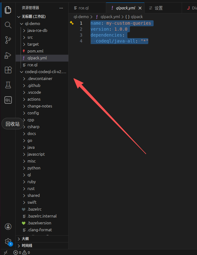 设置qlpack.yml,codeql会在当前工作区自动寻找库的位置。