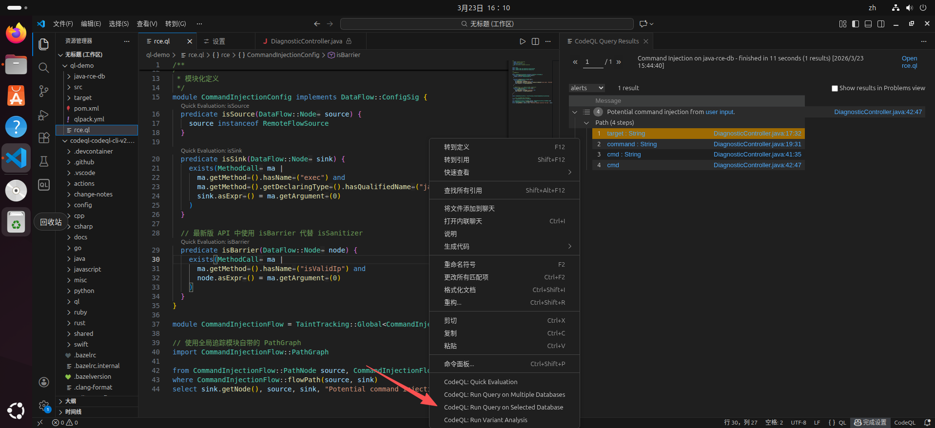 CodeQL 是由 GitHub 开发的一种强大的静态分析引擎,它将代码视为数据,允许安全研究员和开发人员像查询数据库一样来检索代码中的漏洞。